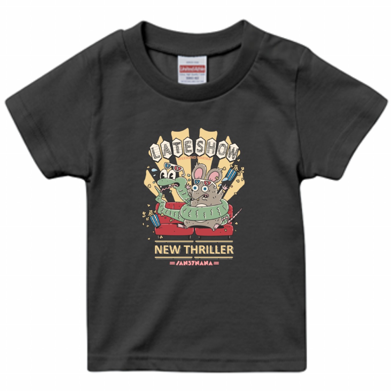 【キッズ】ヘビのチュロスとネズミのマヨネーズTシャツ(ヘイジーブラック)